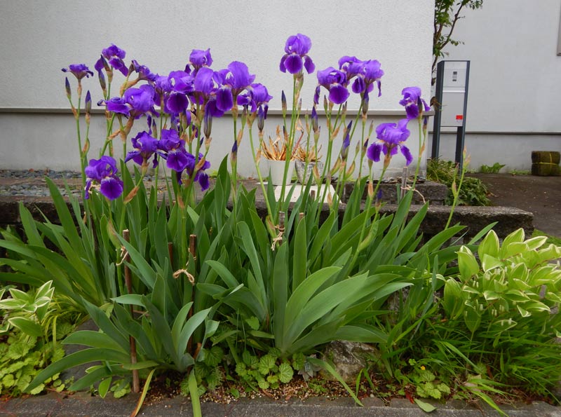 こちらもきれいに咲いて、尾形光琳になりました(花しょうぶですが)。ツボミが出来たときに花が咲いても倒れないように支柱を付けてあげました。