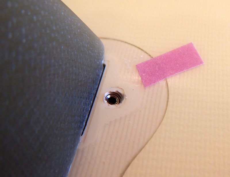 昨日、リペアから戻ってきたので早速試してみると…。こんな感じで、ネジ穴のフチぎりぎりでぴったりちょうど。締め付け感もばっちりです。