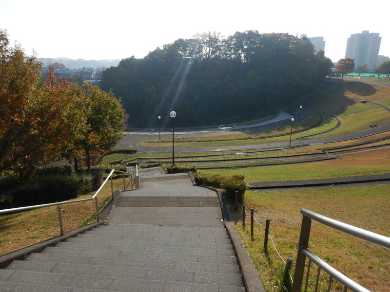 目の前の階段を降りて、林の横の階段を登ってきます。これを今日は6周。合計、900段登りました。ランと体幹はライディングに効きます。踏ん張れます(=スピード出ます) 笑。