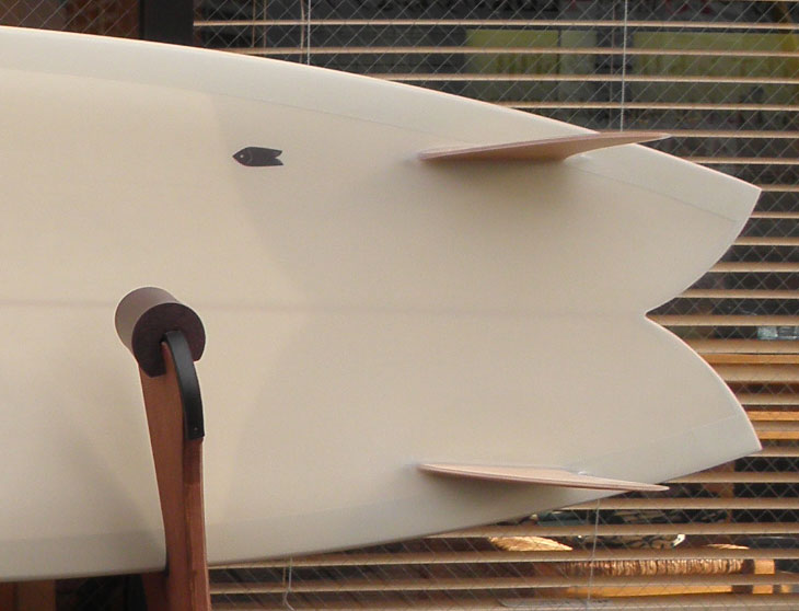 MRに代表されるショートボードのツインフィンは、フィッシュから生まれてきたものですが、プリモフィッシュのフィンは、クラシックなフィッシュにMRのツインのフィンセッティングを組み合わせたものです。