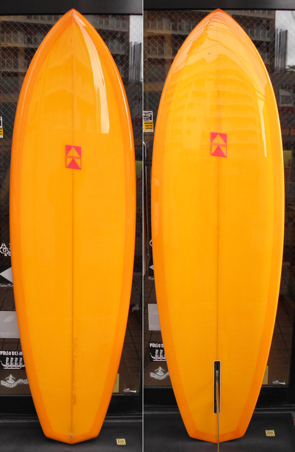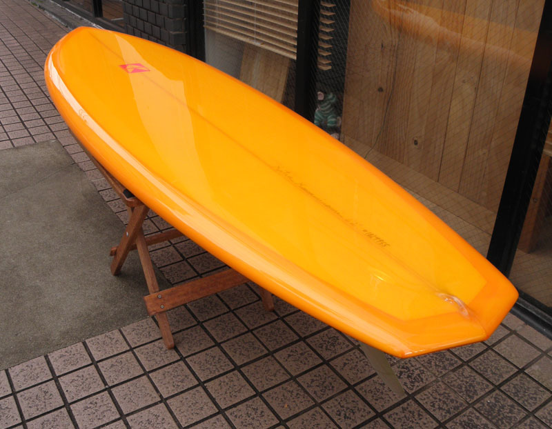 ストックのダイアモンドテール シングルフィンが出来上がりました。スクールバスイエローに赤い復刻ロゴがクラシックです。