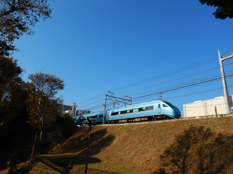 公園の奥は小田急線が走っています。