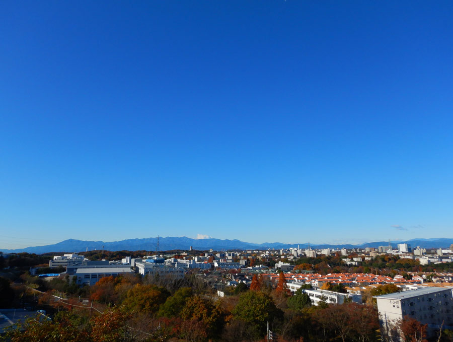 今朝はランニング。空がどこまでも青いです。ニュータウンはすっかり秋の色です。丹沢の向こうに富士山が山頂をのぞかせていますが、こちら側(東側)へ向かって雲が出来ているのは、西風が吹いている証拠です。南風のときは北(右方向)へ向かって雲が出来ます。