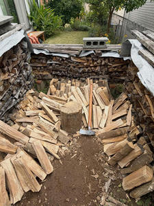 薪の消費量は昔と比べると、半分くらいに減っています。焚き始めるのが遅くなって、焚くと暑くなってしまう時期(春)が早くなってきています。今使っている薪は四年前に割ったもの。2年乾燥が基本なのですが使う量が減ったので余ってます。