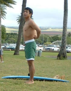 2004年9月にカリフォルニアに持って行ってますから、2003年の終わりから2004年の初めごろにかけてオーダーしたものだと思います。それまでは、同じくクリステンソンの6’0のフィッシュに乗っていました。写真は2002年末のハレイワです。フィッシュ初乗りで全然乗れなかった 笑。