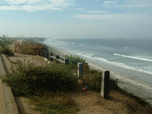 翌朝、私たちはオーシャンサイドの少し南に位置するカールスバッドへ向かった。路肩に車を停め、崖の下に広がる海をみていると、波がいたるところでピークを作りブレイクしている。広い海岸線に見えているサーファーはほんの数人だ。待ち合わせの場所へ来ていたのは、ロングボード雑誌の編集部で働くイアン・ギブソン。もう一人は、ウィンダンシーローカルのマーク・エッチングス。マークは雑誌に見開きでライディングの写真が載ってしまうようなサーファーだ。先週もオーシャンサイドの大きな大会で優勝したらしい。