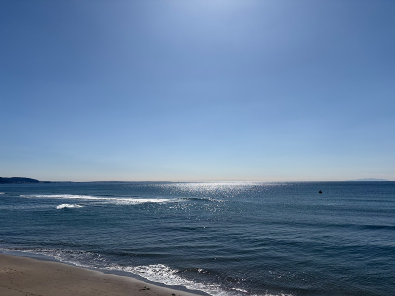 ボードの調子が良かったのもありますが、この日はいい天気で風もなく、冬の透き通った海水と無風のトロリとした波のフェイスがとてもきれいで、最高にテンション上がりました。冬の波乗りはこれだから好きです。