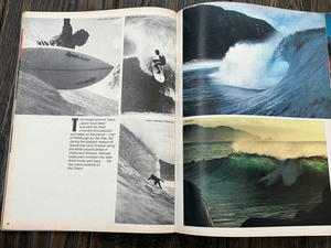同じ見開きはどれも日本の波です。サーファーは、マーク・リデル、マイク・トムソン、テリー・フィッツジェラルド、そして活さんです。皆、当時の超一流のサーファーたち。もちろん活さんもその中の一人、ということです。