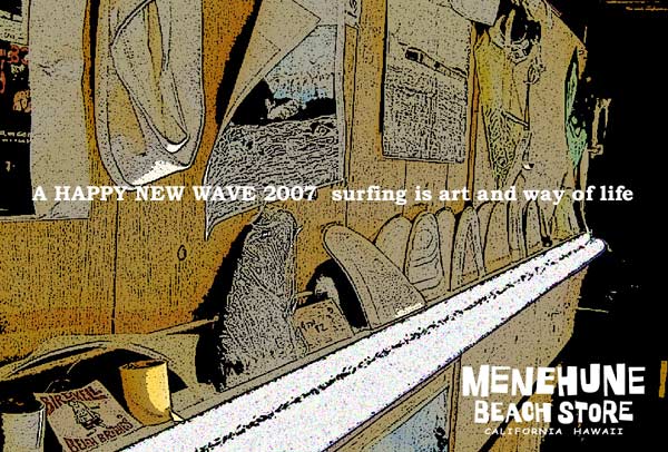 昨年2006年の漢字は「命」でしたが、メネフネビーチストアの今年の漢字は「遊」(ユウ、アソビ)で行ってみたいと思っています。基本的にサーフショップの存在理由なんて遊び以外のなにものでもないのですが、今年は特に力を入れてもっともっと遊んじゃおう…ということです。