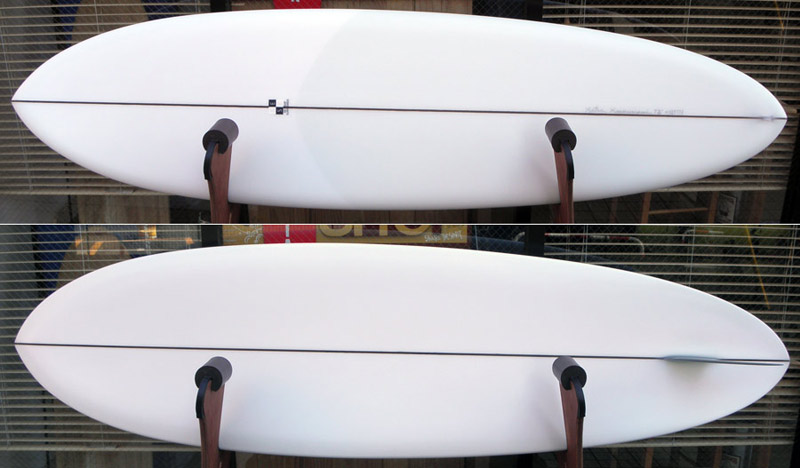 フラットボトムとロールドボトムのボードを、同じ7’6”でテストするスキップ・フライ 1969年。