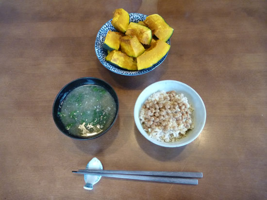 朝ごはんにはカボチャ。カボチャも鍋焼き。シンプルな料理法ですが旨いのです。