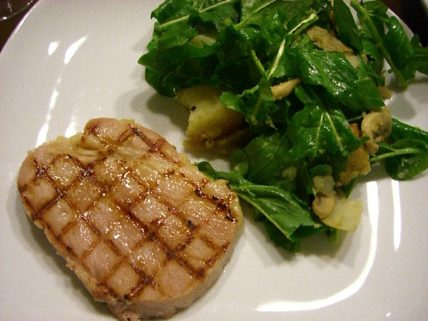 で、正月の残りのハムの塊りでやってみました。グリドルを熱して網目状に焼き目をつけると見た目も美味しそうです。
