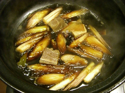 いつもは干し椎茸とカツオ節でダシを取りますが、今回は長崎のあご(飛魚)の干物を使ってました。冷蔵庫で一晩水に漬けると煮干状態だった飛魚くんはすっかりもとの姿に戻っていました(動き出すかと思いました(笑))