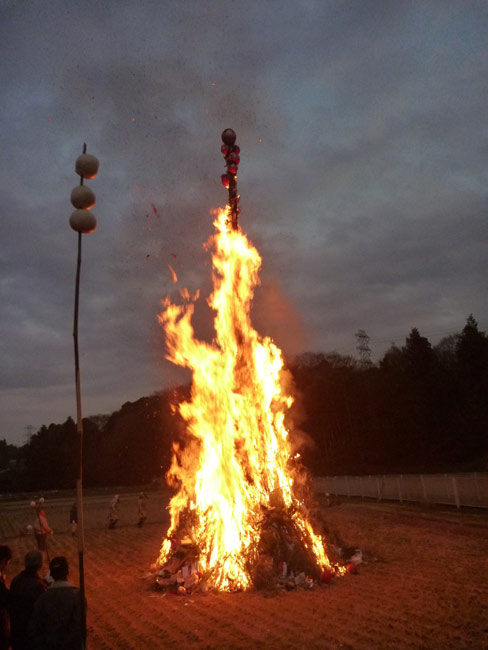 どんど焼きは願をかけたダルマや正月飾り、書初めなど集めて、1月15日に燃やす行事です。いろいろな呼び名があって、日本のほぼ全域でおこなれている風習らしいです。私は今の場所に引っ越してくるまで知りませんでした。