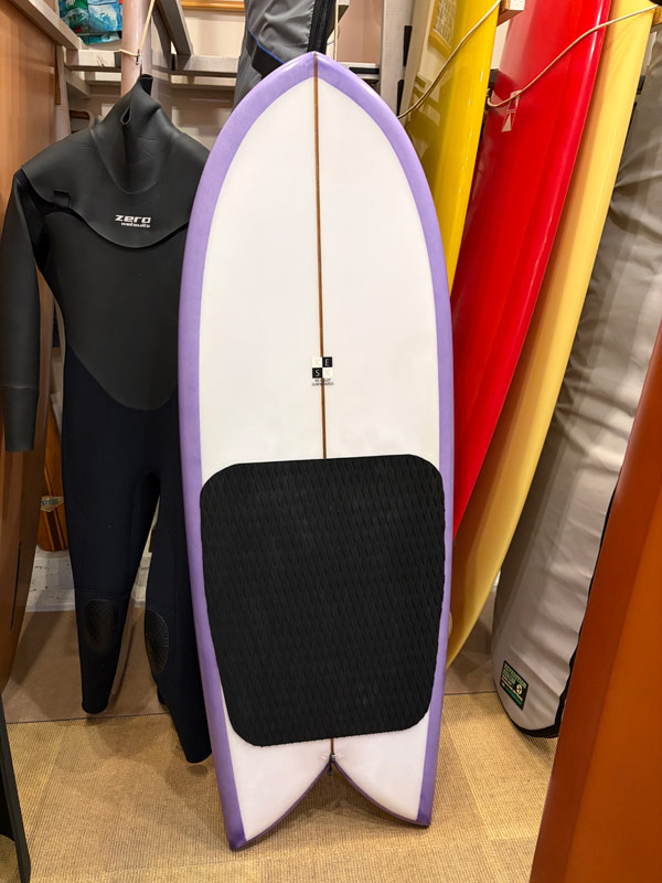 懐かしいフィッシュがやってきました。ユーズドボードです。20年以上前に自分で乗っていたクリステンソンのフィッシュです。グラッシングはジャック・リーブス。