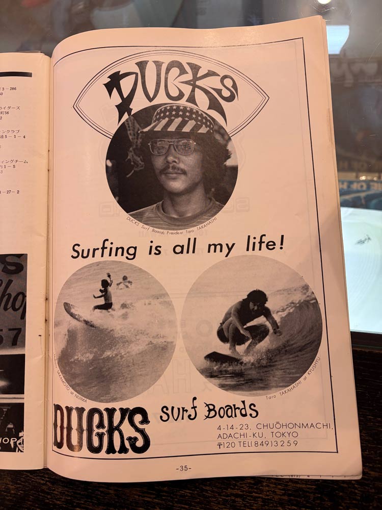 ZERO ウェットスーツとニーボードはどちらも活さんのお兄さん、川南正さんの作品です。うまく言い表すことができませんが、両者を並べると歴史の香りが漂ってくるような気がすると言ったら可笑しいでしょうか?
