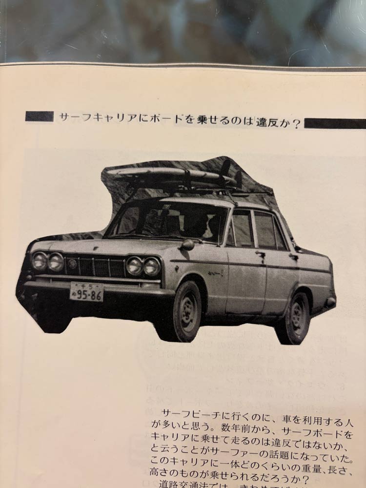 当時のサーフカー。ルーフキャリアにサーフボードを積むのは違法か?という内容です。