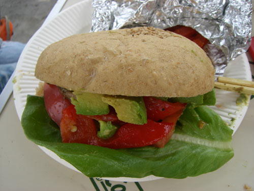 途中エネルギー切れで昼飯。どんなに忙しくても食べ物の準備は怠りません(笑)火を熾してBBQは面倒くさいので家で焼いてきたチキンとパプリカをトマトやアヴォカドと一緒にピタパンに挟んでランチタイム。