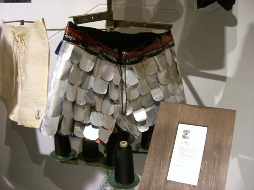 空き缶でつくったトランクス。これは履けない(履ける?)部屋のオブジェにしたい方はお問い合わせください。