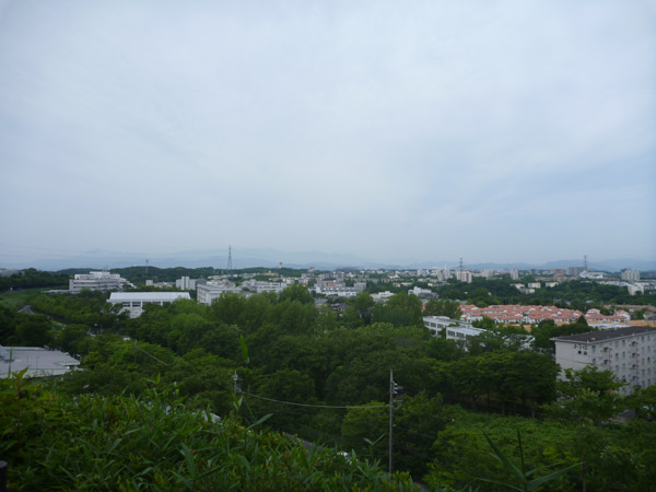 多摩ニュータウンはすっかり緑の中。丹沢、富士山はぼんやり。そろそろ梅雨だなあという景色です。