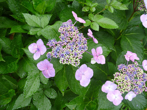 走っているとそこここでアジサイがきれいに咲いています。セイヨウアジサイに比べるとかなり地味ですが、私はこのガクアジサイが好きです。