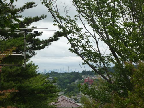 裏山の稜線の向こうは多摩ニュータウン。昭和40年代のニュータウン。なぜか好きなんです。最近、再開発で高層マンションに建て替えているところは威容感たっぷりでいまいち好きになれません。この低層住宅と団地の景色の方がほっとします。都心へのアクセスはいいのだから、もっと若い人たちにアピールして、古い部屋や商店街をリノベーションすれば環境もいいし、素敵な街を作れると思うのですが…そんな仕事があったらぜひやらせてください。