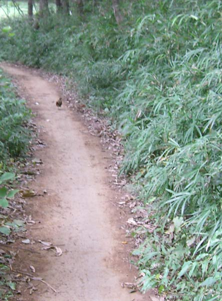 また山道に戻るとウズラらしき鳥の群れが前を歩いていますま。かわいい声で鳴きながら草むらへ消えていきます。キジもいますが、キジのメスにしては小さすぎるのでたぶんウズラ?