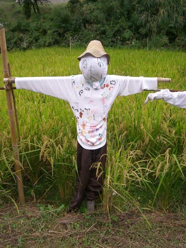かかし1号。なんだか本当に人間が入ってるみたい。