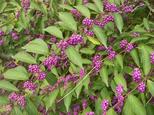 初夏には白い素朴な花を楽しませてくれたコムラサキがこんどはきれいな紫色の実をつけました。