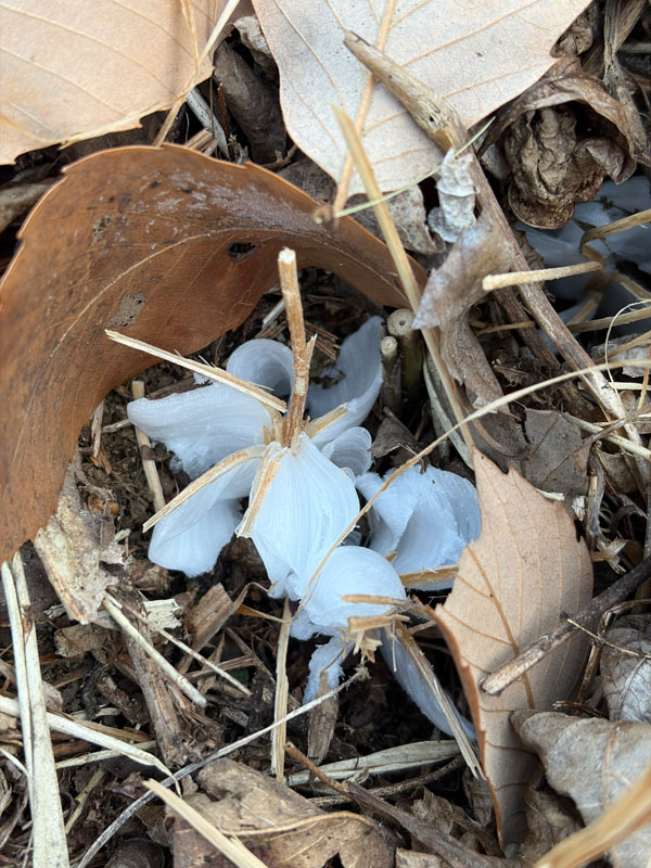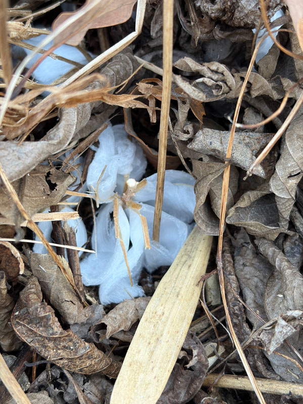 予想した通り、シモバシラの花ありました!しばらく雨が降っていないので小さいです。
