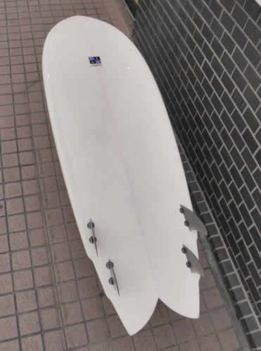カツさんがシェイプしてくれた、ダイアモンドテールのシングルフィンに良く似ています。フラットなロッカー、ノーズからテールへのボリュームのバランス、レールの形とボリュームなんかはもうそっくりです。