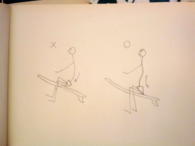 ボードは絵よりももっと水平になる位置に座った方がいいのか?今度海の中で試行錯誤してみます。腰が悪いから「やらない」のではなくて、本調子でなくてもできる範囲で「やりながら」改善していこうと思ってます。