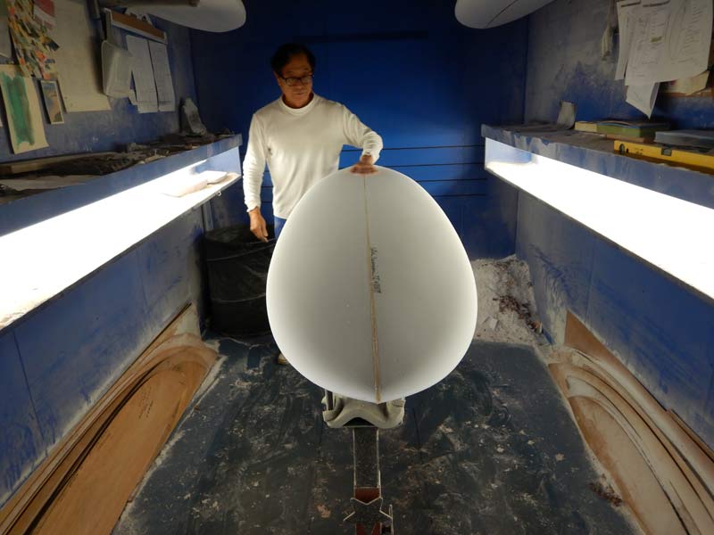 ショップのオープンは2001年。それ以来、ロングボードをベースに、フィッシュ、ボンザー、シングルフィン、ニーボード、パイポとさまざまな種類のサーフボードを作り、試してきました。