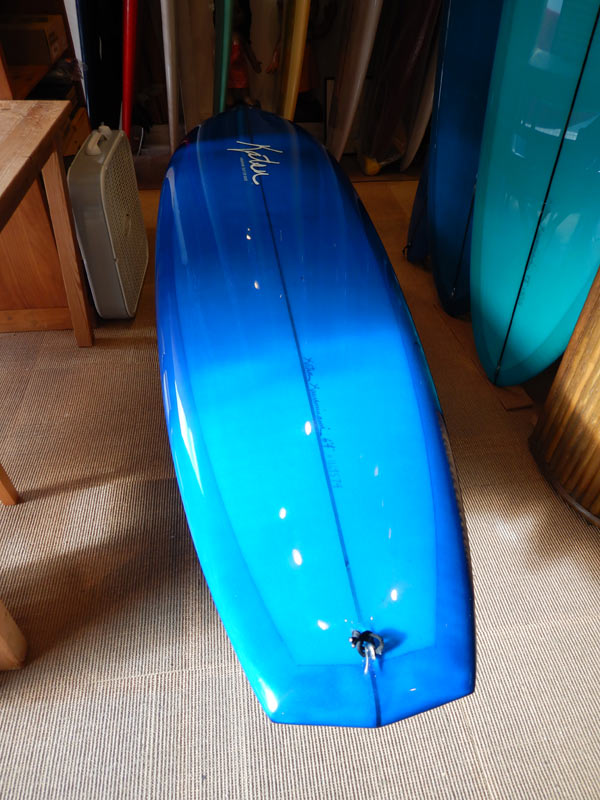 元のユーザーはライダーの1人で、クラシックなロングボードから画像のようなシングルフィン、フィッシュなどをきれいなスタイルで乗りこなしてしまうサーファーです。彼にとって、上のダイアモンドテールはマジックカインドの一本だったそうですが、あたらしくオーナーになった方からも、いい感じのフィードバックをいただいております。