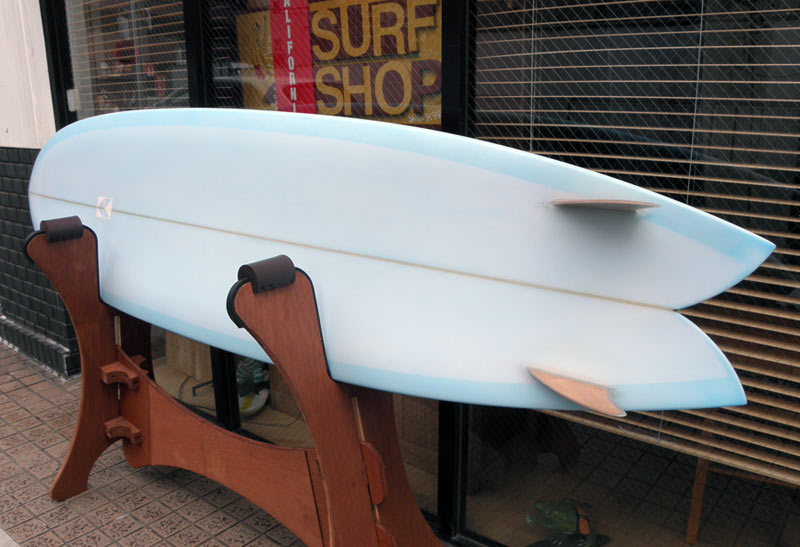 きれいな色のKK FISHが出来上がりました。レングスは5’6”。リーフの波を愛するサーファーガールからのオーダーです。