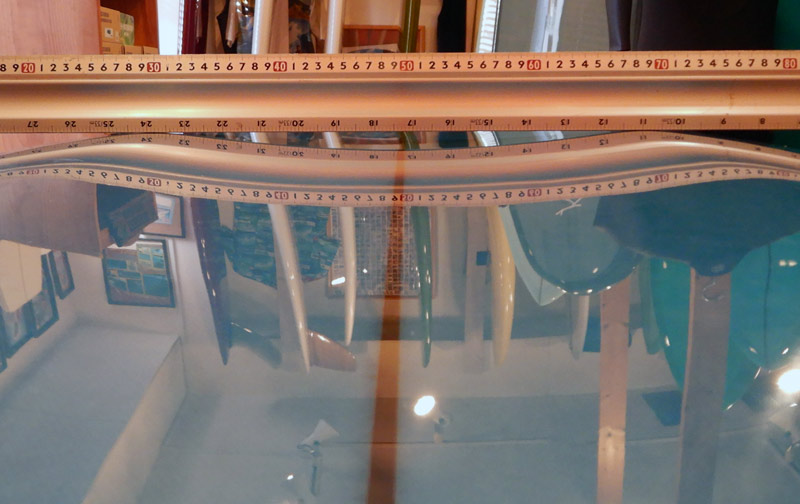ヒミツはボトムとレールのシェイプにあります。これはボードのセンター付近。