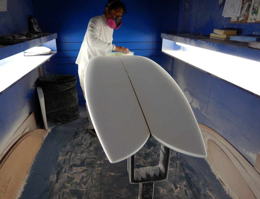 ショップのオープンは2001年。それ以来、ロングボードをベースに、フィッシュ、ボンザー、シングルフィン、ニーボード、パイポとさまざまな種類のサーフボードを作り、試してきました。