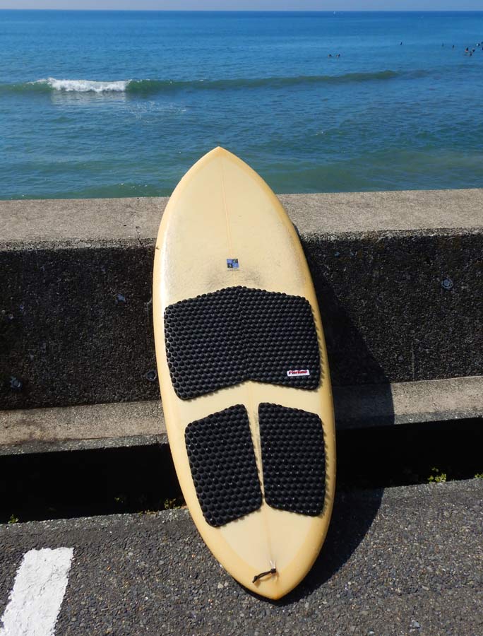 これです。このスワローテールも調子良かったのです。このボードはレングスが5’6”で、幅が23”です。