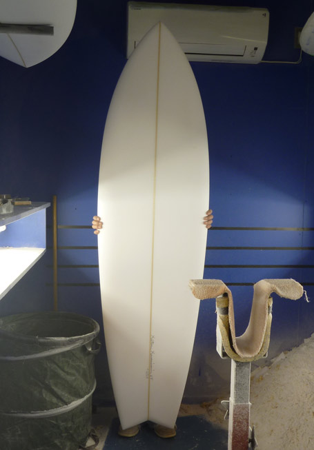 実際、調子良く気に入って乗っていました。もう一度作りたいボードのひとつです。昔風の三角形をした小さめのフィン、ダウンザラインでスピードが出ます。