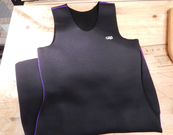 実際、着てみると5ミリの生地は思っていたよりも分厚い感じは無く、ジャージの裏地は肌触りが良くて動きやすいです。構造がシンプルなので、その分軽いです。オール3ミリで経験してますが、海の中ではこれがかなり気持ちいいのです。うちで着ていただいているユーザーさんたちも同じように言っていただいています。「これ、着ていて気持ちいいです」って。