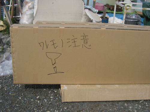 部屋でローテーブルの代わりに使っていたのですが、引越しに当たって使わなくなったのでボードのリペア工場で使っていただくことになりました。