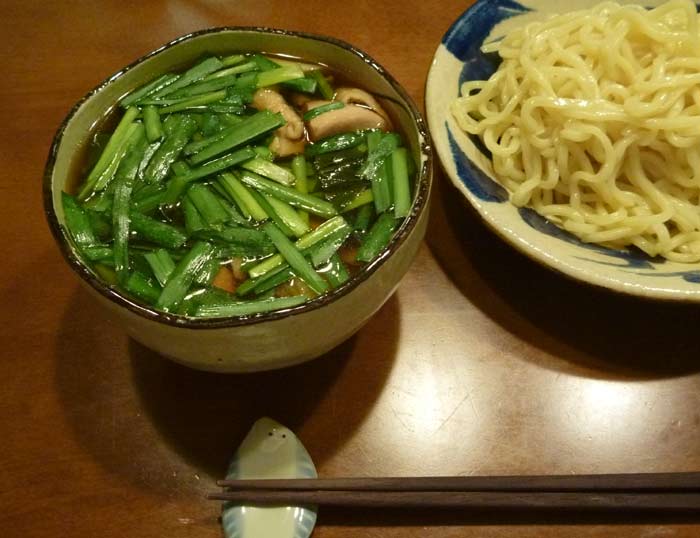 ろうそくでは無く電灯の明かりの下で食べた晩ご飯はつけ麺。