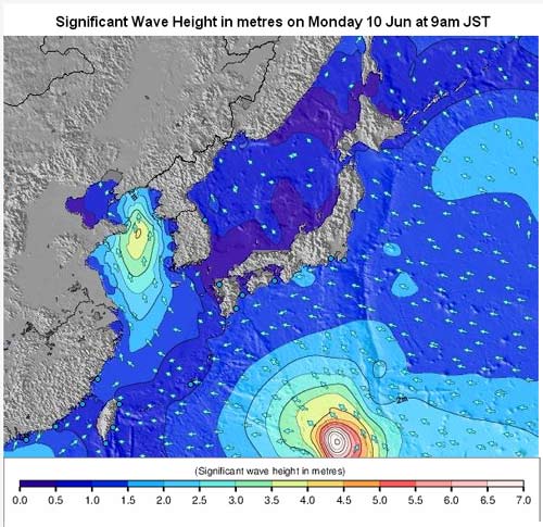 来週の月曜日の波予想。これは、どうみても台風ですよね?