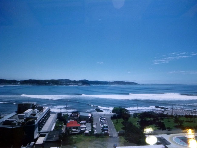 台風が発達しながら相模湾に向かってかなり近づいてきていましたが、前線にブロックされてこの日の朝もまだうねりは入ってきていませんでした。私は朝、波が無かったので町田で仕事をしていました。