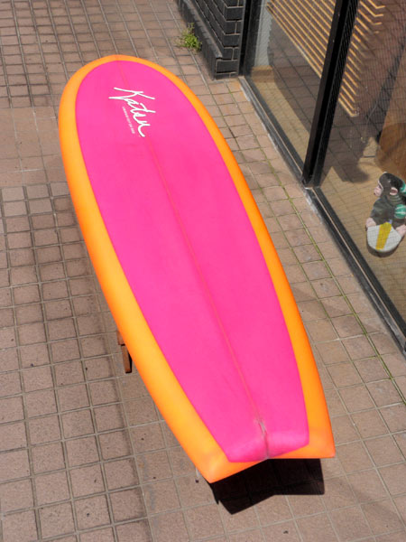モデルとしては無いアウトラインなので、まずはクラークフォームの材料ありきで、そのブランクスに合わせてサイズやアウトラインをカツさんが考えて作ったと思います。極端な部分や試行錯誤的なデザインは無くブランクスの特長を活かすように素直にシェイプされています。こういうボードは絶対調子いいです。