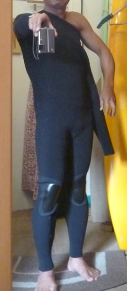 最初はこれが分からずもう片方の腕が抜けず汗をかきました。この辺が従来のウェットと勝手が違うところですが、分かってしまえば難しいことではありません。