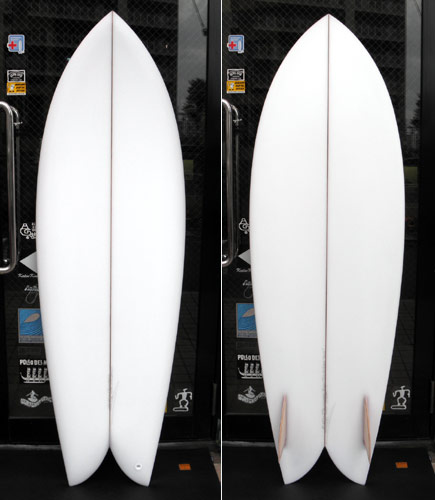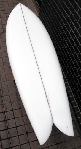 オーダーシートを見てみると(記録残ってます)2004年。フィッシュの人気が一般的に出始めたころですね。クリステンソンにフィッシュシモンって作れる?と依頼したらこのボードが出来上がってきたのです。その後にフィッシュグライダーという名前になって、7フィートから8フィートちょっとまでの長さで結構作りました。現在ではノーチラスというモデル名で作られています。フィッシュテールって短いフィッシュと同じでターンのきっかけを作りやすいのか、反応いいんです。