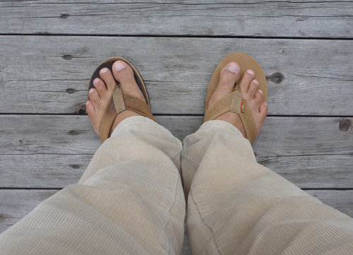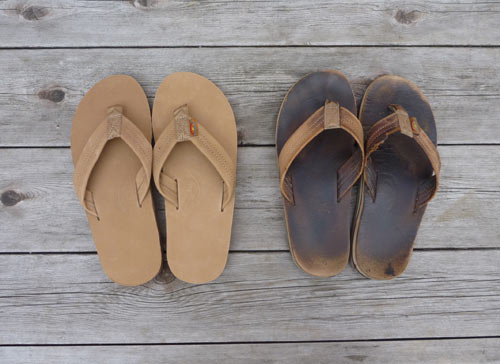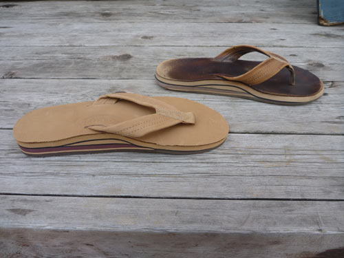 レインボウサンダルを新調しました。古いのは何年履いたかな?
