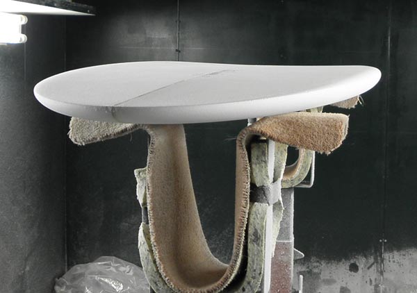 ロングボードから始まって、米軍ベースに忍び込んで(?)見た、「EVOLUTION」でボードはどんどん短くなって、トライフィンの時代。南の島の危険なホローウェイブに魅せられて、その波のためにシェイプされていたスペシャルクィーバー、そして地元湘南の波で楽しめるスペシャルシェイプ。力の弱い波からもスピードを楽に引き出せるアウトライン、ロッカー、ボリュームのバランス。ファットな外観からは想像がつかないほど細かい部分まで、理論的な裏づけと経験が活かされたシェイプが施されています。