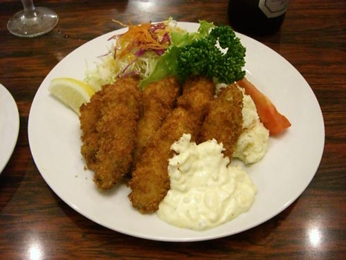 予定通り午後2時開店。昼飯は町田駅近くのキッチン ママのカキフライ定食。カキ山盛りです。
